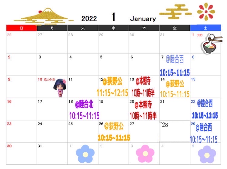 日によって場所/時間/レッスン内容が異なりますので、よろしくお願いします( ´ ▽ ` )
