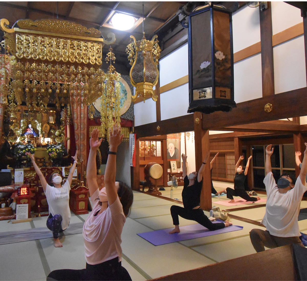 日蓮宗本照寺(厚木市下古沢)で8月27日の夜にヨガのレッスンが行われ、14人が参加した。 本照寺では檀家でなくても参加できるイベントを折々に開いている。今回はインストラ...